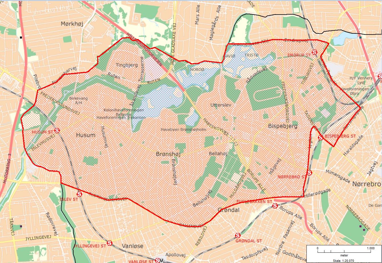 Visitationszonens omfang: Kredsgrænsen mod nord fra Grønnemose Allé og så mod uret til Slotherrensvej – Sallingvej – Hillerødgade – Nordre Fasanvej – Lygten – Tagensvej – Rovsinggade – Lersø Park Allé – Tuborgvej – Emdrupvej – Grønnemose Allé.