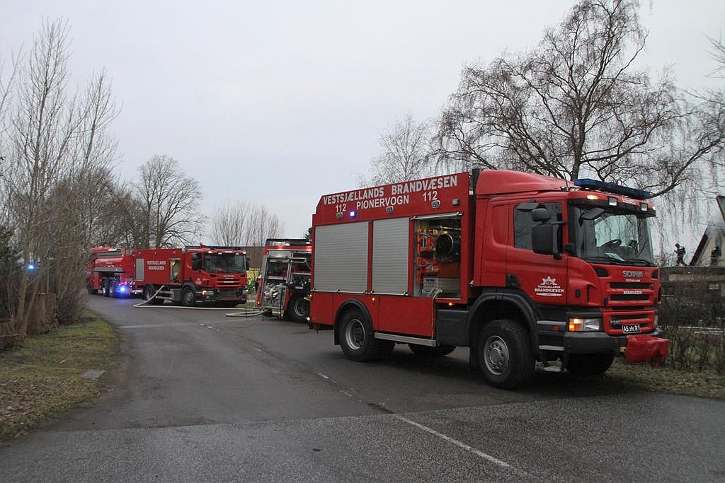 Politiets brandteknikere undersøger her til formiddag ejendommen, og det kan på nuværende tidspunkt ikke udelukkes at branden var påsat, oplyser Midt- og Vestsjællands Politi.