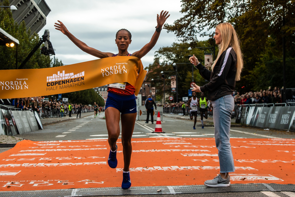 Dorcas Tuitoek og Tabitha Wambui var på forhånd nævnt som de største favoritter i kvindernes løb ved CPH Half, men ingen af de to kom først over stregen. Det gjorde i stedet Brihane Dibaba fra Etiopien, som i tiden 65.57 mniutter forbedrede sin egen personlige rekord med næsten 2 minutter, og det er den ottende hurtigste tid på distancen i år. Hun er da heller ikke uvant med at vinde, da hun. er tidligere vinder af Tokyo Marathon.