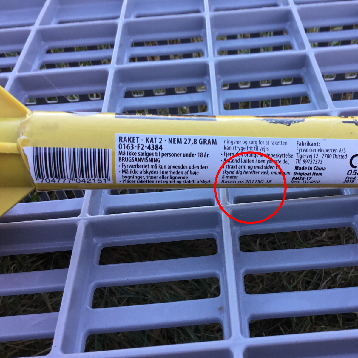 Der findes forskellige batches af raketten. Det er udelukkende raketten med det specifikke vare- og batchnummer, som er omfattet af advarslen.
