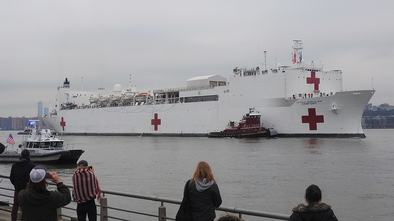 Den amerikanske flådes hospitalskib “Comfort” lagde mandag til ved New York City. Skibet, der har 12 operationsstuer og 1.000 sengepladser, skal ikke tage imod coronapatienter. I stedet vil patienter i land blive overført til skibet for at blive behandlet for andre ting end coronavirus.